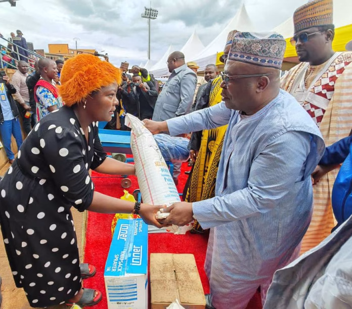 (EcoFinances.Net) – Après avoir sillonné les villages Baleng, Badeng, Bapi (Bafoussam II), Kongso et Toket (Bafoussam III), la caravane humanitaire conduite par Mbe Idriss Confiance a pris fin en apothéose au stade municipal de Bafoussam. Près de 10 000 personnes — parents, déplacés du Nord-Ouest, communautés Tikar, Musgum, Mbororo — ont reçu un lot impressionnant de denrées et de matériel : 2 000 sacs de riz, de sel, cartons d’huile, savon, craie et couleurs ; 10 000 machettes, 50 machines à écraser, 1 000 parapluies, 250 pulvérisateurs.Ce geste, soutenu par des partenaires asiatiques et le groupe Baba Danpoulo, a été salué par le gouverneur de la région de l’Ouest, Awa Fonka Augustine, entouré de son état-major et des autorités traditionnelles, dont le chef supérieur Bamoungoum.